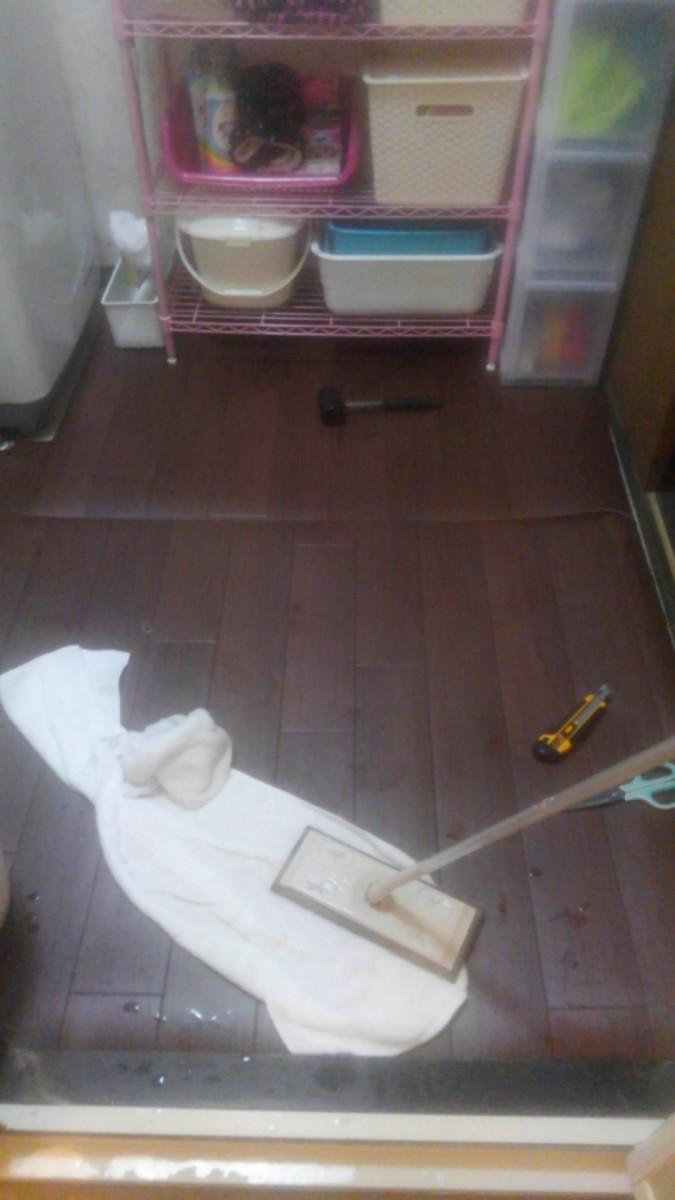 一旦全部どけて、床もブラシとマジックリンで磨いて水拭き空拭き。