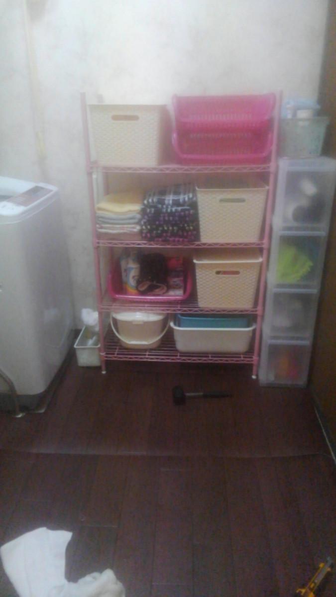 写真奥の壁際に、カラーBOXが2つあって、タオルとか何やら置いてたのだけど、兄貴の部屋で使ってたのを、改築時に父が移動してタオル置きに使ってたんです。
