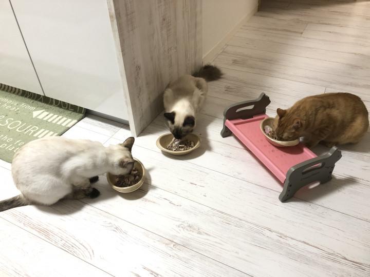 匂いが良かったのか移動すらせずその場で食べ始める猫息子達…