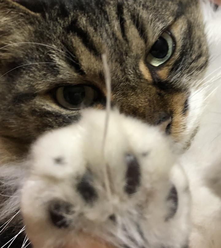 さっきお客さんが途切れたので少しウトウトしていたらこの『まめ』の顔です。