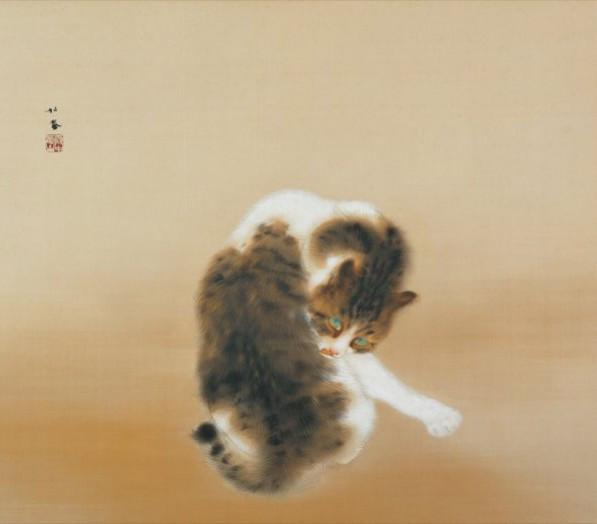 その姿に中国南宋時代の徽宗皇帝の描いた猫を想起し、絵心がかき立てられたため、交渉して譲り受けて京都に連れ帰り、日夜、画室に自由に遊ばせながら丹念に観察して作品に仕上げたのであった。