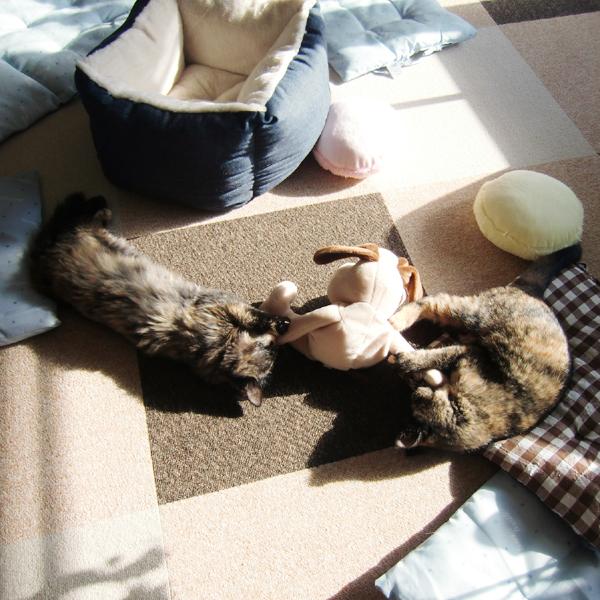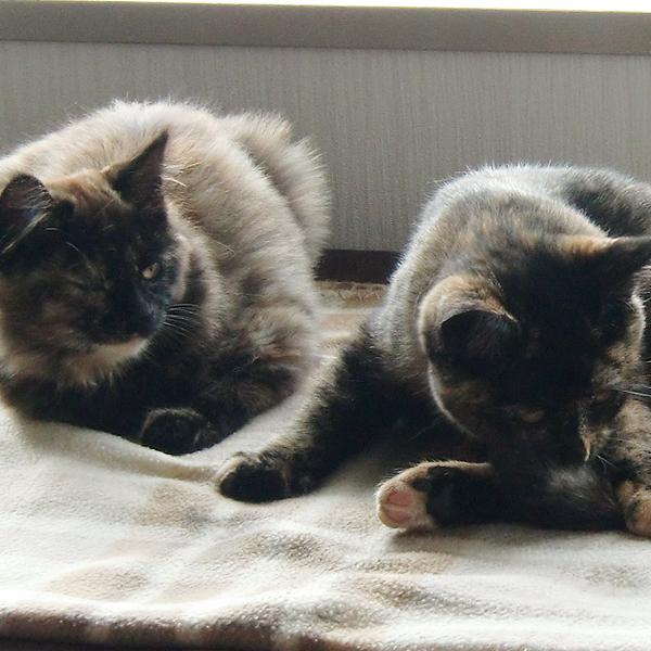 さて、年始の風邪は人間(私)がひいたのですが、弱っているのがわかる(から怖くない)のか、或いは体温高くて気持ち良いのか、姉妹共に寝込んでいる私の布団の上にいました。幸せすぎて召されるかと思いましたが、あったかくて一日ちょっとで完治しました。