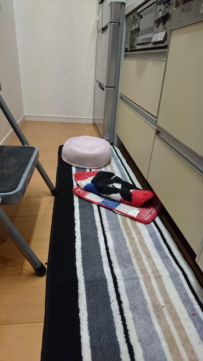 以前は起きた時や帰ってきた時にケージの前にベッドがポツンと置いてある程度でしたが、最近はケージから離れたところで発見することも増えてきました。