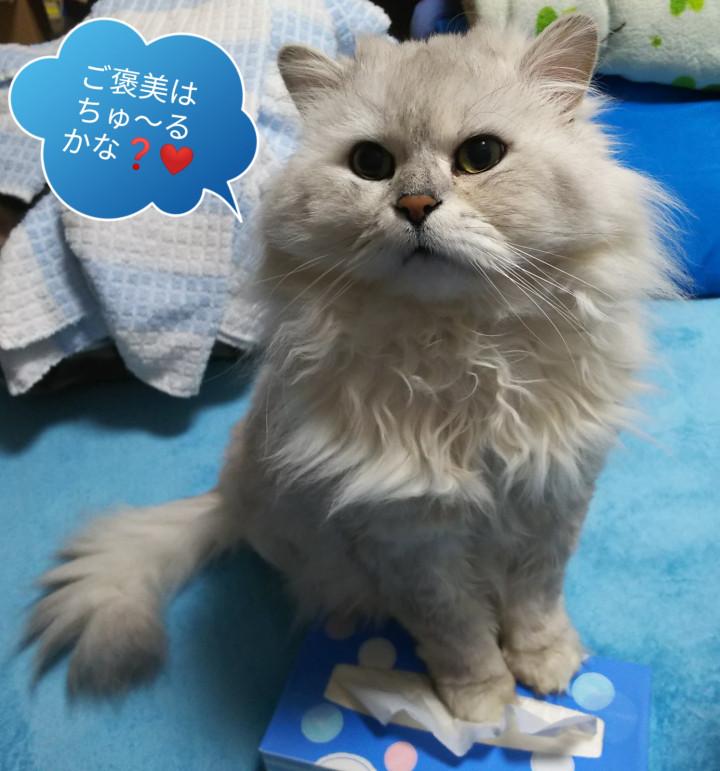 😅ティッシュの箱潰れちゃうよお💦バシバシやらなくても時間でちゅ~るあるじゃん❓️