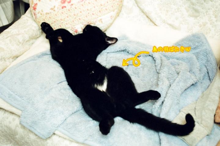 例の三日月の白い毛。私には鳥が飛び立つように見えます。