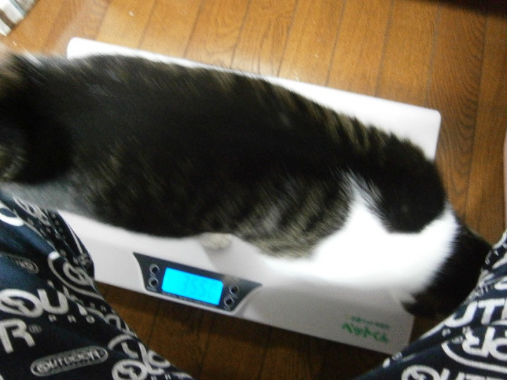 あ、うちの子は私の前に体重計を置いておいて、私がしゃがんで声をかけるとスリスリしながら体重計に自動的に乗ってくれます(笑)