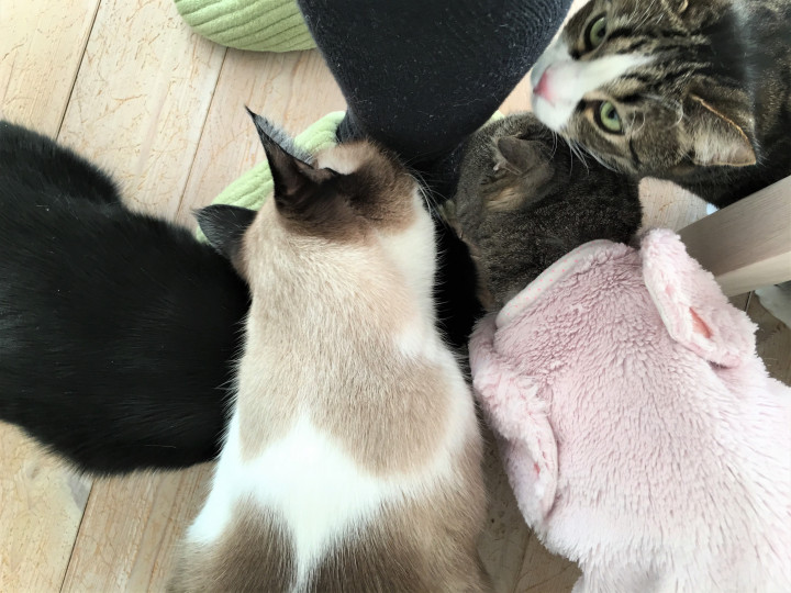 いつも寝てばかりの 老猫リンちゃんまで やって来て