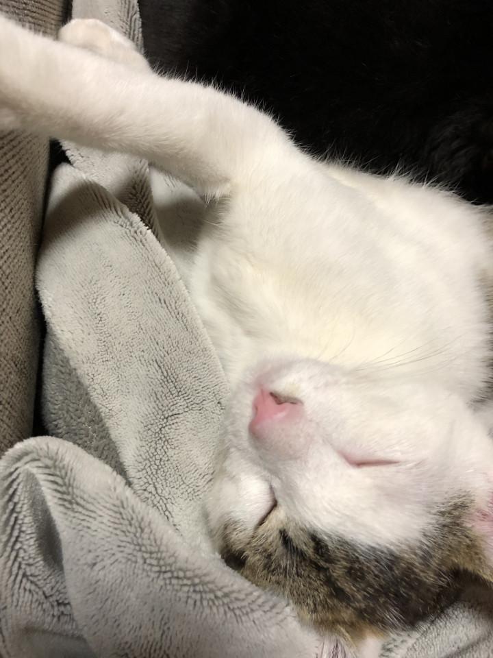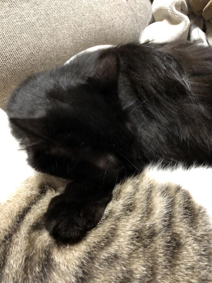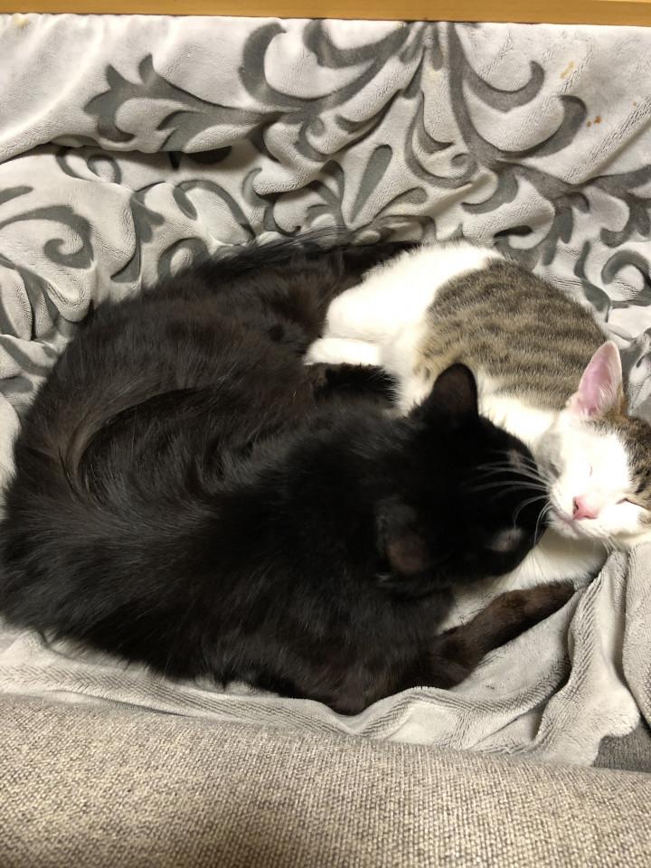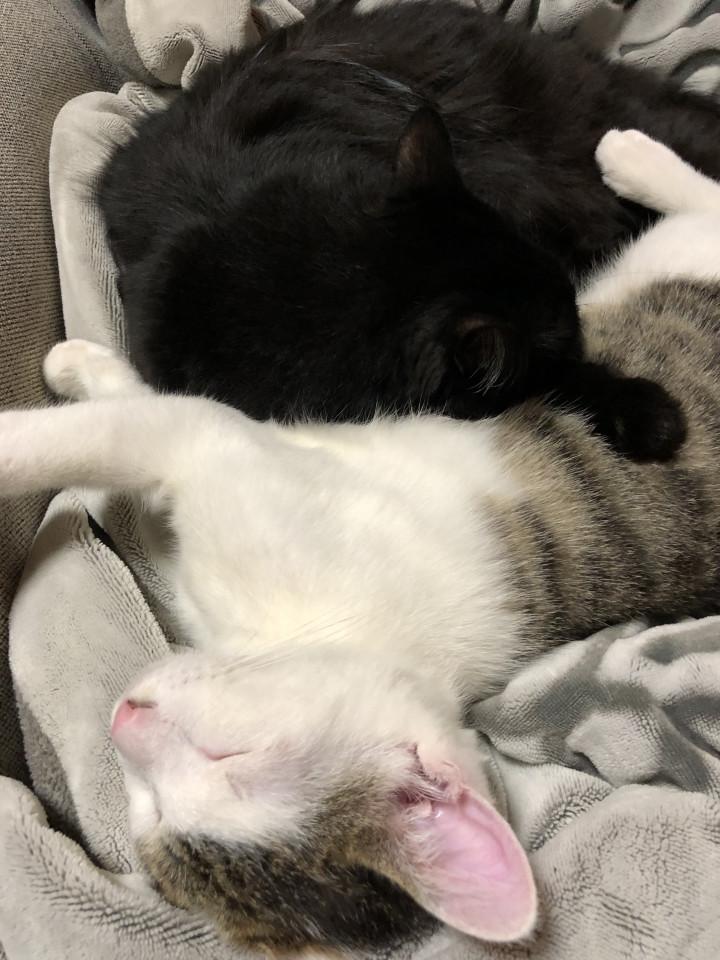 そらくんですが、きぃちゃんと一緒に寝る事が多いには多いですが、のんちゃんとも一緒に寝るんです。