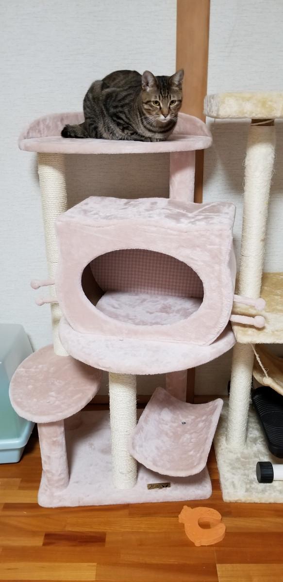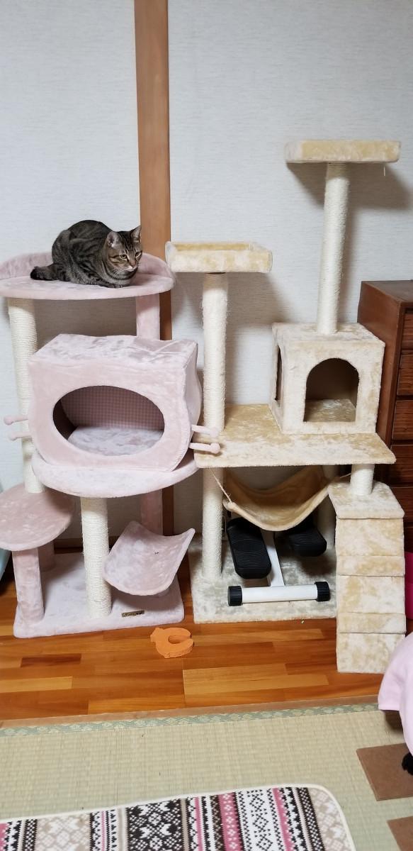 と、言うのも5台目購入したお安いキャットタワーの揺れが半端なくて猫たち乗りゃしない!
