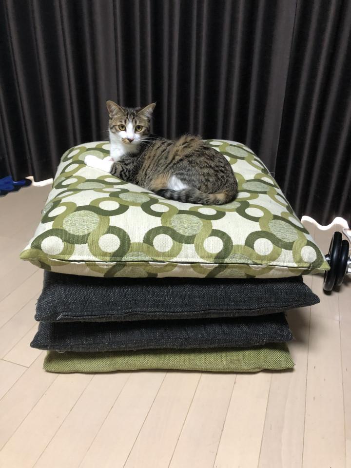 ということでそのままもんちゃんのベッドになったクッションタワー(笑)