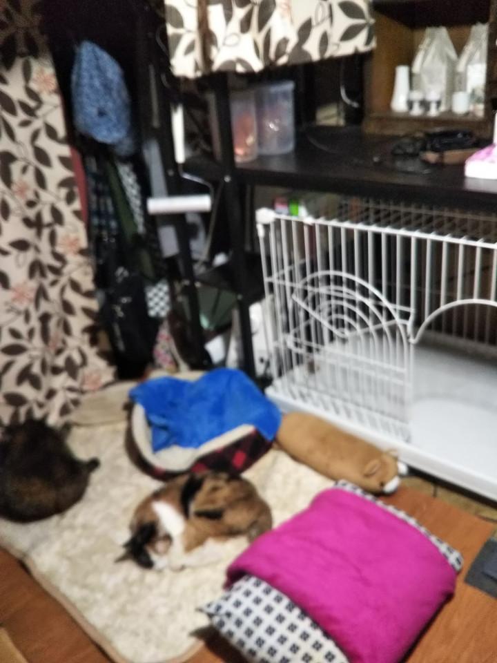 りんちゃんの急変からゲージの前で寝れる体制をつくりました