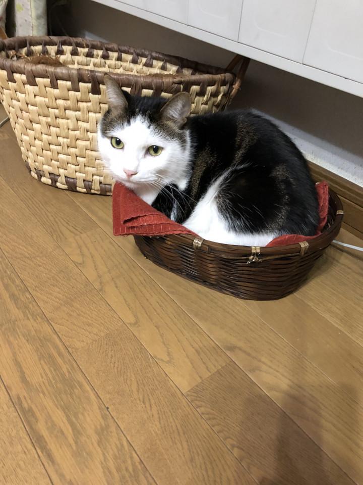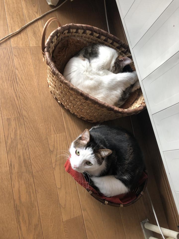 この籠、大人気で、マルゴマで争って入って寝てます。