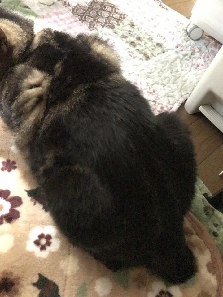 目を開けると目の前には黒い塊が…あぁ、なんだニコか〜とまたウトウト…どうやら当たっていたのはニコちゃんの短い尻尾のようでした。