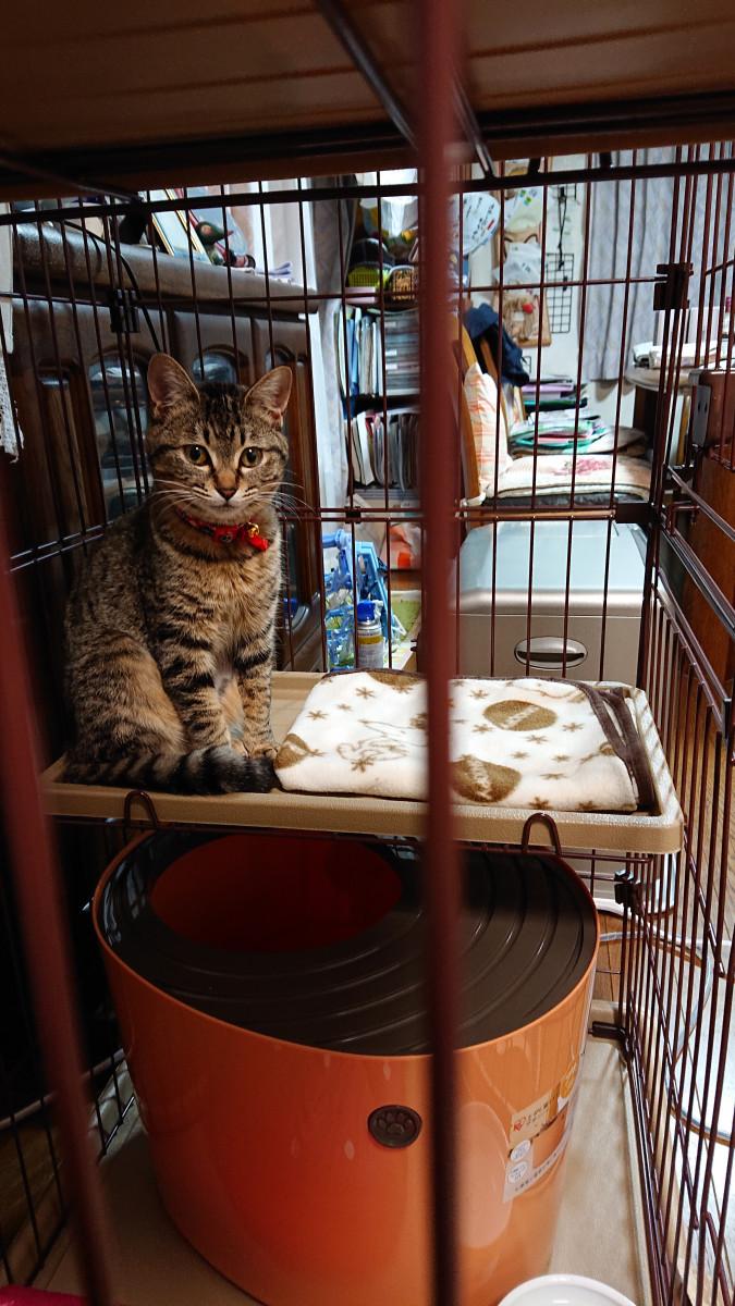 ケージの柵越しに顔を近づけても嫌そうでなかったので、顎の下を撫でようとしたら、猫パンチが飛んできました😝