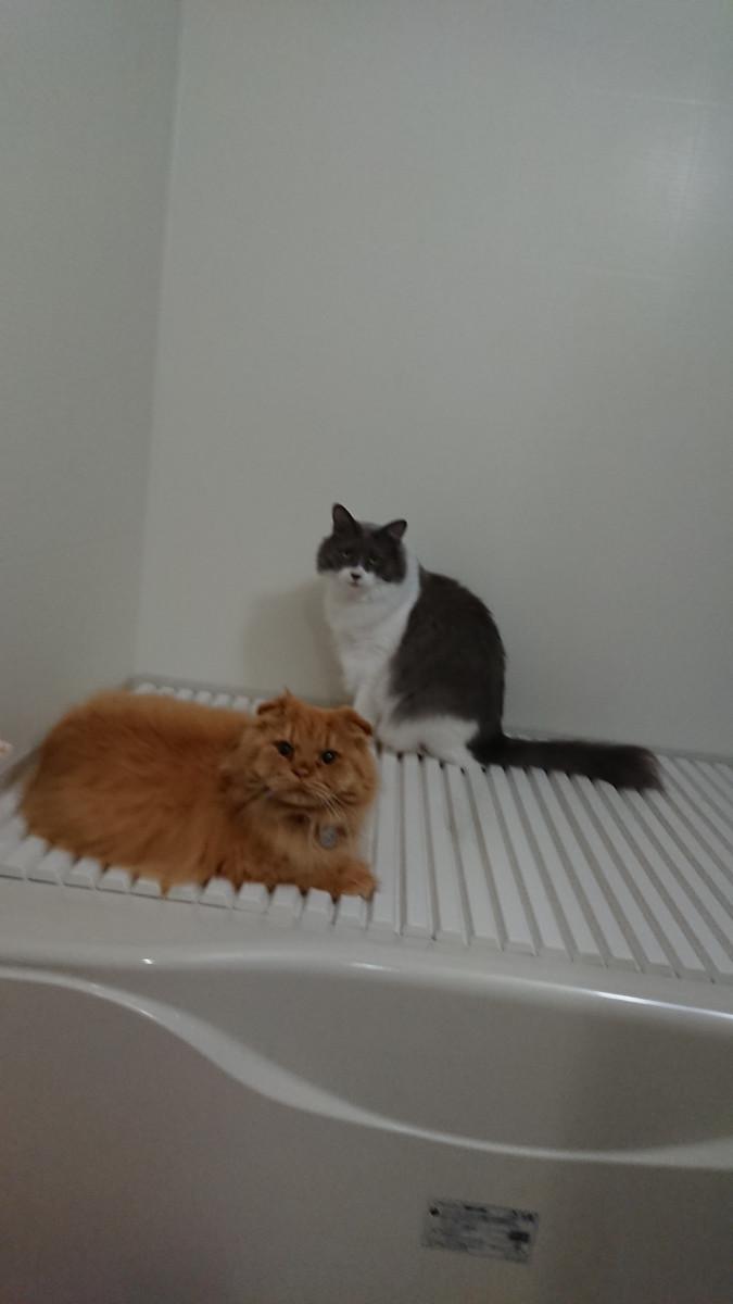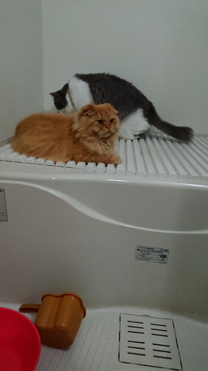 メンズがバスタブの上で暖をとってる💦