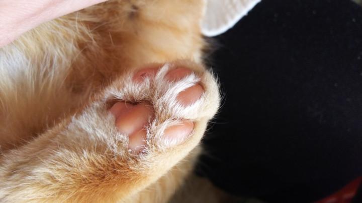 肉球にかからない位の毛の長さと紹介しましたが、ガッツリ肉球の指の間?からふわふわの毛が出てました。