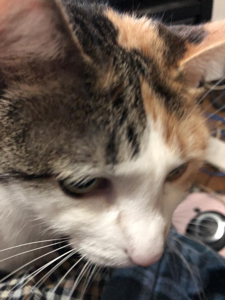 今朝も4時に起こされ、睡眠不足気味です。先住猫の3歳になる三毛猫メスのタマ