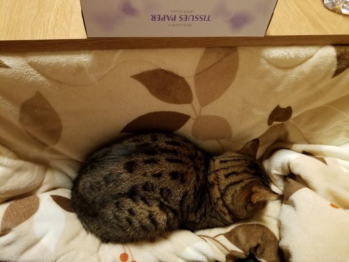こたつのスイッチは入ってるからあったかいでしょうけど・・・。