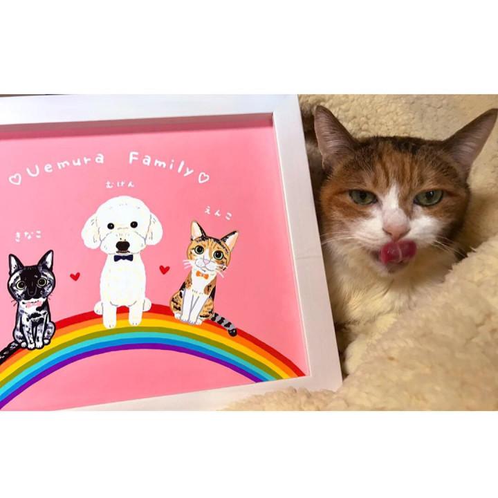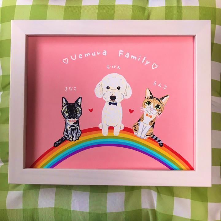 3匹の個性や特徴をしっかり捉え、そっくりに描いて貰えました◎