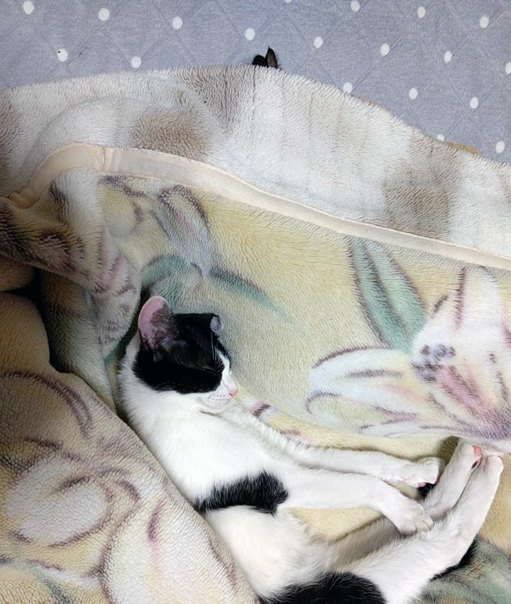 その1畳ほどの温もりに、ニンゲン2にん+猫族5にんが集結する。
