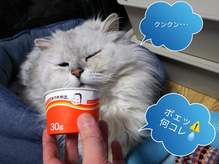 ・リラックス状態の猫の前に開封した納豆を提示してみる。