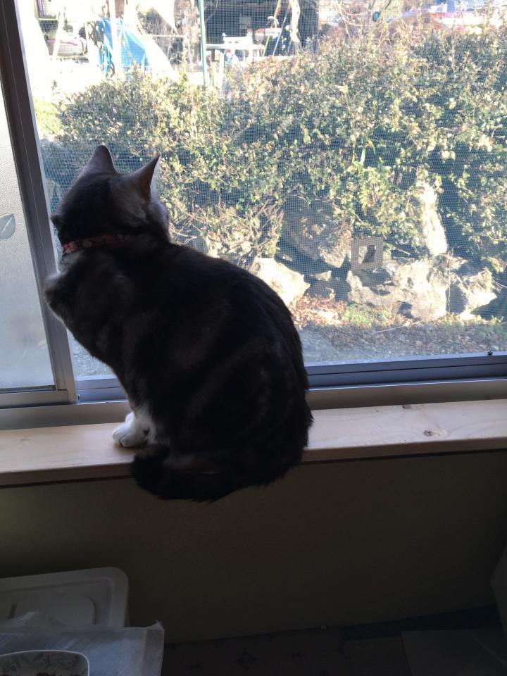 朝は寒いですが空気の入れ替えのために窓を開けます。北側なので日差しが入るわけではないのですが、猫ドンとても喜びます。