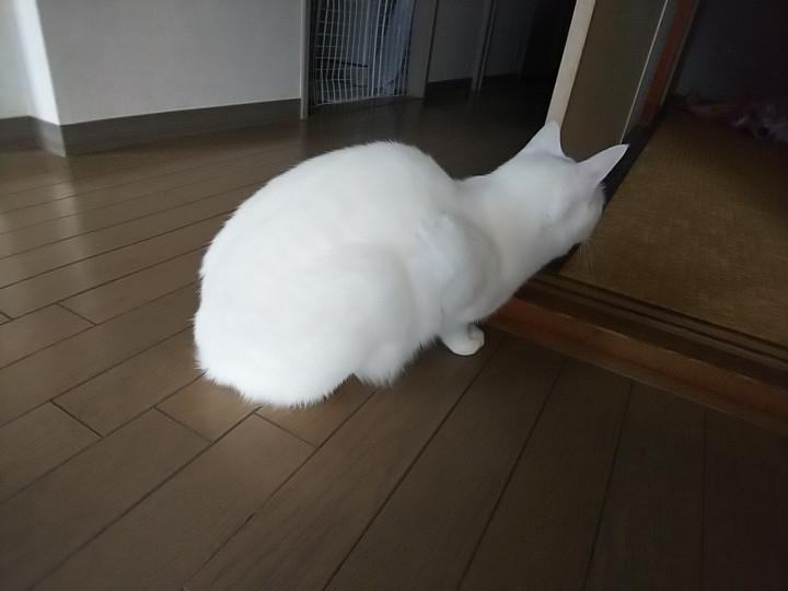 ちがう布団の上で寛いでたけど、それ見てちーちゃんがびっくりしたみたいで(汗)。リビングに来なくなってしまった…