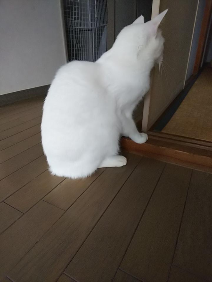 新入りちゃん、ずっとケージの中だと可哀想だな…と思い、畳の部屋でだけ出してあげました。