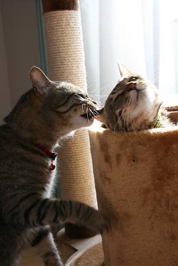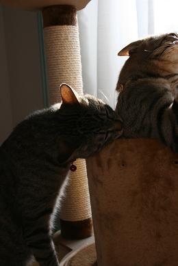 父さんが、タワーの筒を外したら、二人がこんな風に遊んでいたのが、私にはお風呂に入ってるみたいに見えました♪