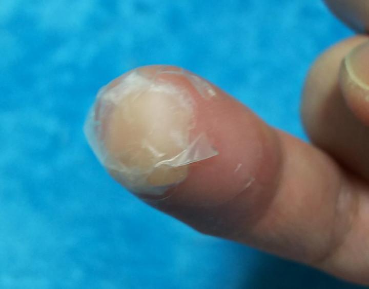 我ながら深いなあ…とは思いましたが止血できたので、傷パワーパッドとカテリープで処置してます(笑)