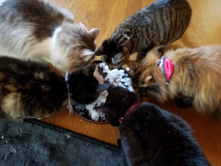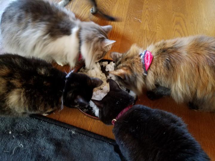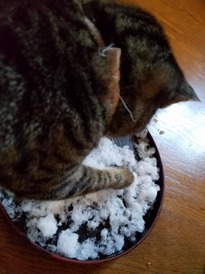 外に出すわけにはいかないので、お盆に雪を入れて、部屋に持ってきた❄️