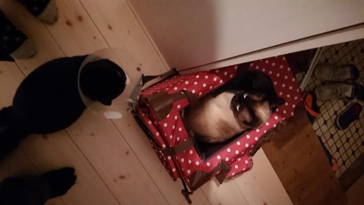 最近キャリーに入れば外に連れていって貰えると学習したらしい。。