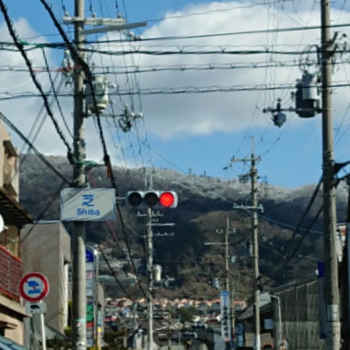 今日は、東大阪から見る生駒山にもうっすら雪化粧が。