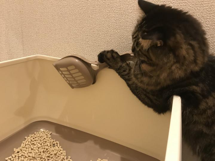 毎日せっせと、スコップをガジガジしてトイレの中に落としに行くろびん。