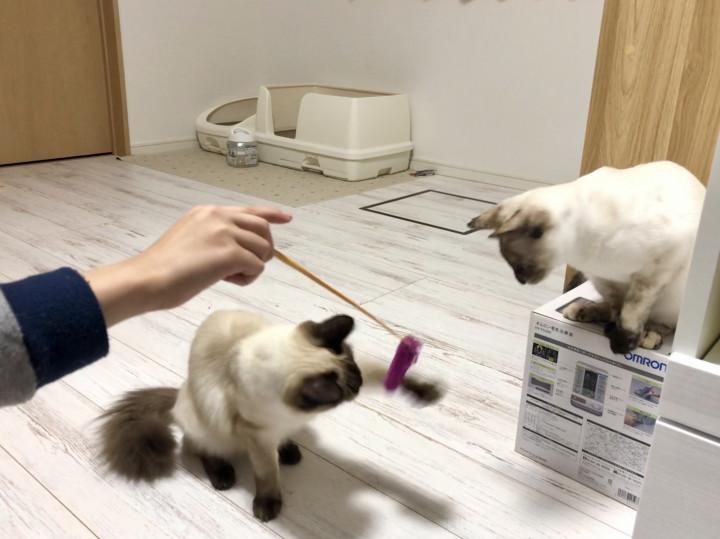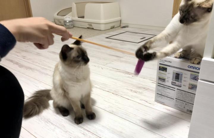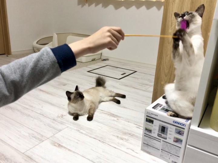 先日は買ったじゃらしを椅子に挟めて遊んでいました