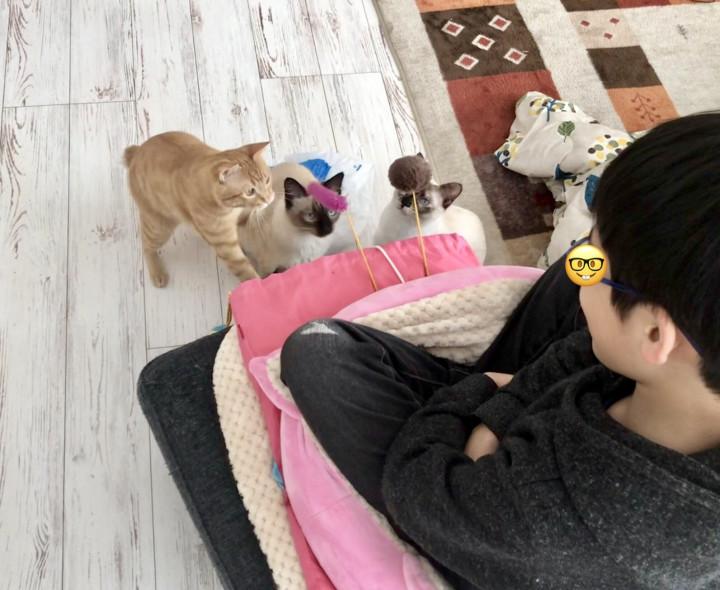 二本足の兄ちゃん、最近良く猫達と遊んでくれます😌