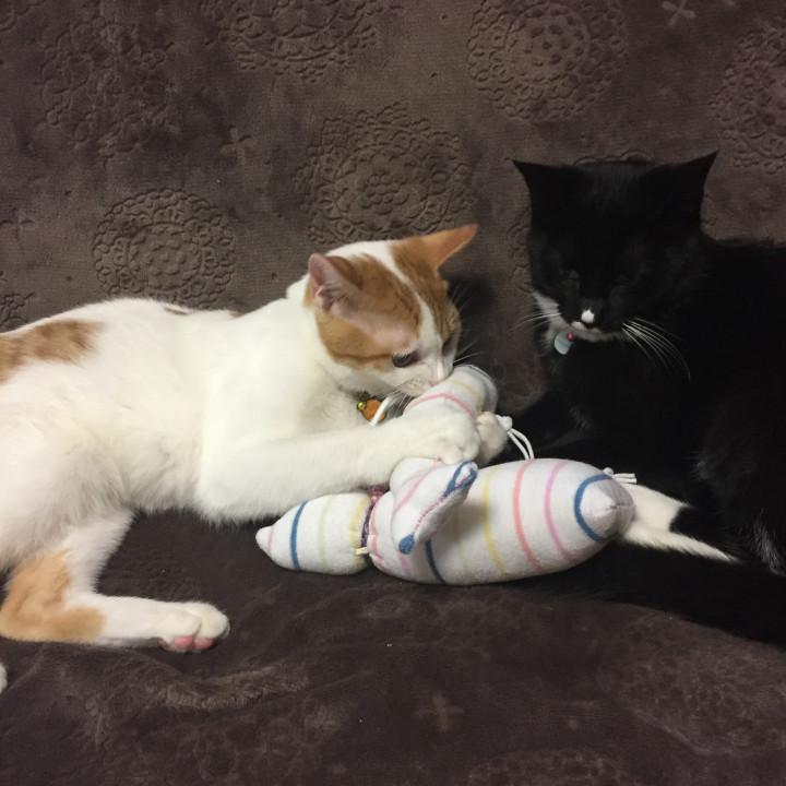 にゃんずが独り遊びしてもそこまで危なくないおもちゃを考えるこの頃です。