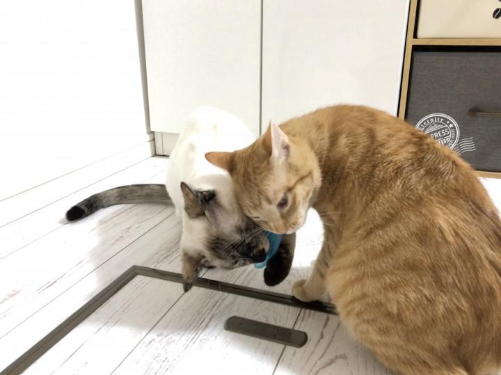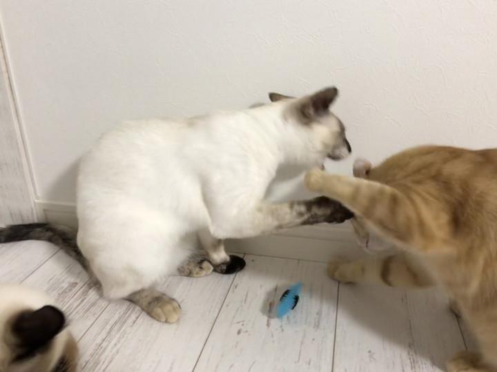そして取り合いを始めて10分後くらいにさかにゃんに異変が