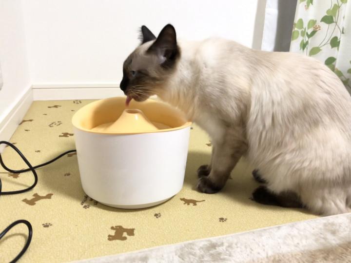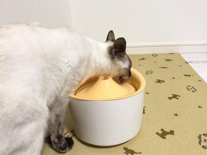 風牙は手前側、正面から見ると左側の水が落ちてくる場所に口を運びます😸
