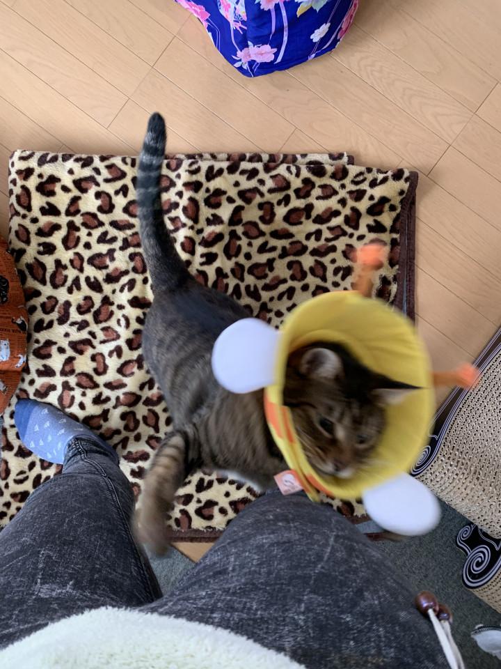 足にまとわりつく(転ぶ・・・踏む・・・蹴る・・・だから辞めて・・・