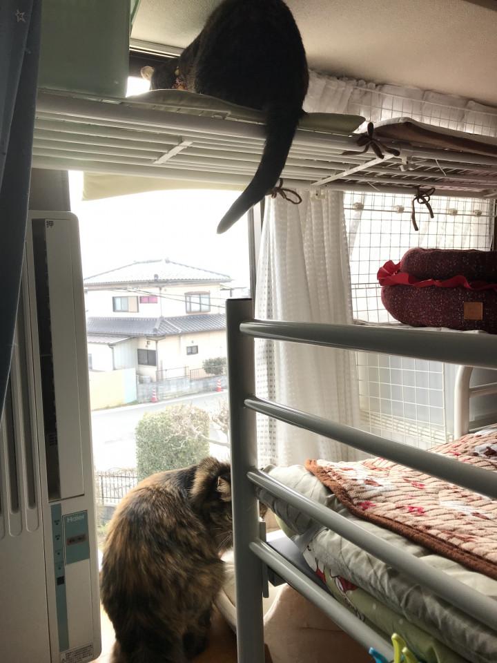 キャリーに入ってもらおうとケージの上から下ろすとユズ子ちゃんがチェックを始め、出たり入ったり〜。