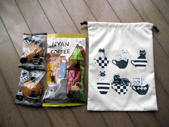 内容物はメインの巾着とマドレーヌ✖2とコーヒー豆です。