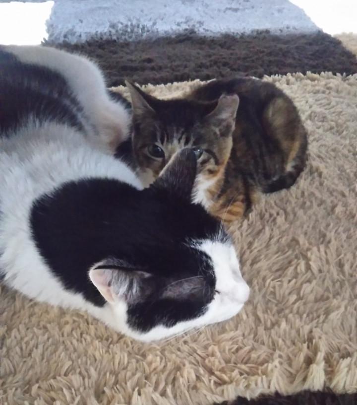 お水も2個用意してあるのに同じところから飲んでます >w<