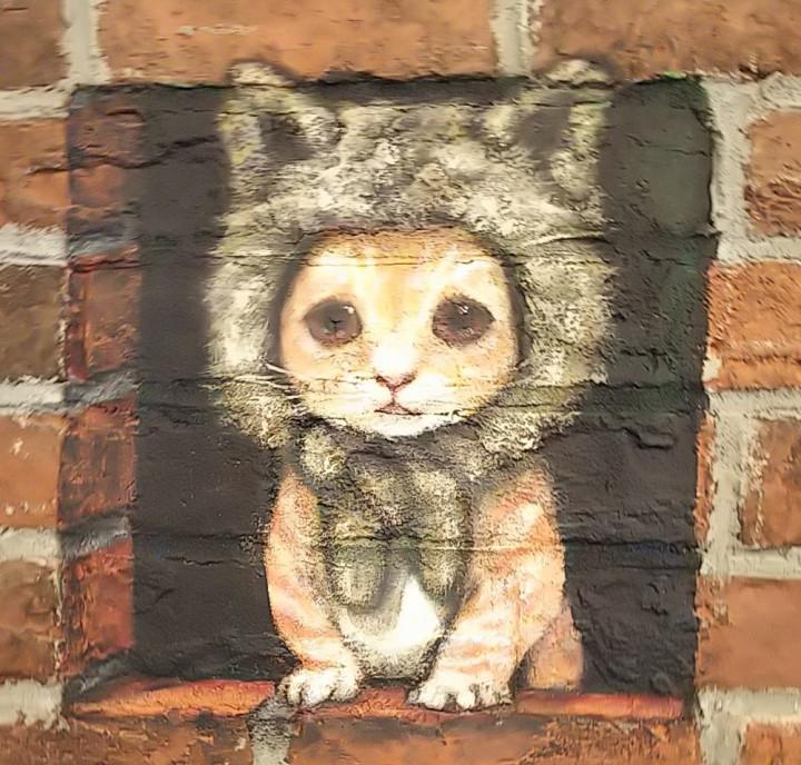 小5と一緒にフードコートのようなところでランチ。この絵、他には豚やうさぎや犬があったのですが、猫だけ帽子?被ってました。なんでやろ~?と不思議…