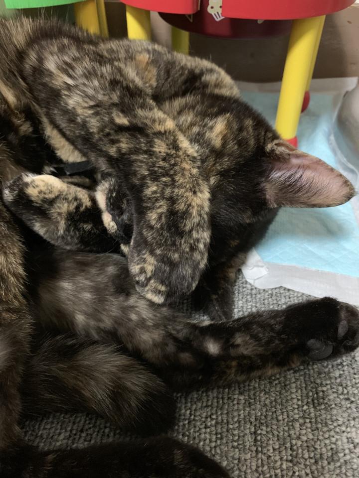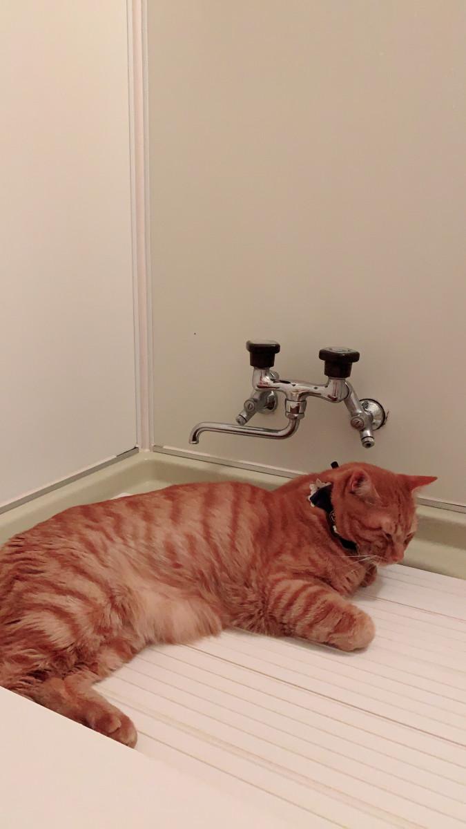 湯船の蓋が温かいらしくうたた寝・・・