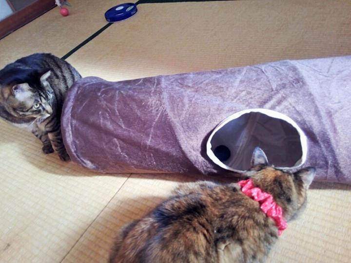 とりあえず以前買った猫トンネル…