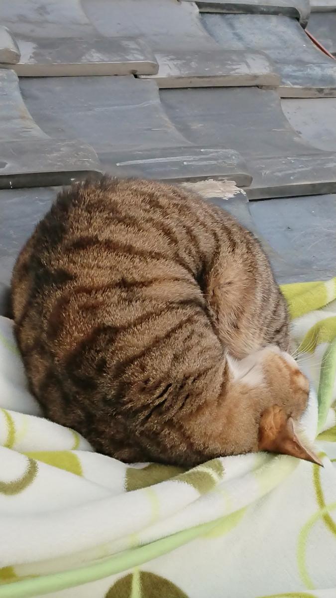 私に気がついてチラッと見たあと、再びまぁるくなってお休み中。