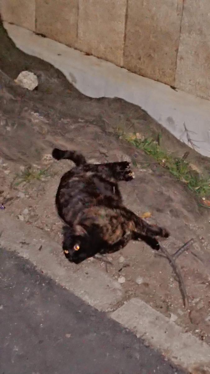 そしていつもの公園で解散ですが、猫3号は後ろからお家までついてきて、門の上で門番です。