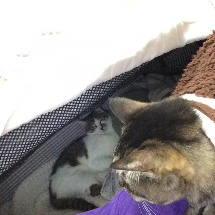 2匹を同時にナデナデ、左手ソラ 右手がサク