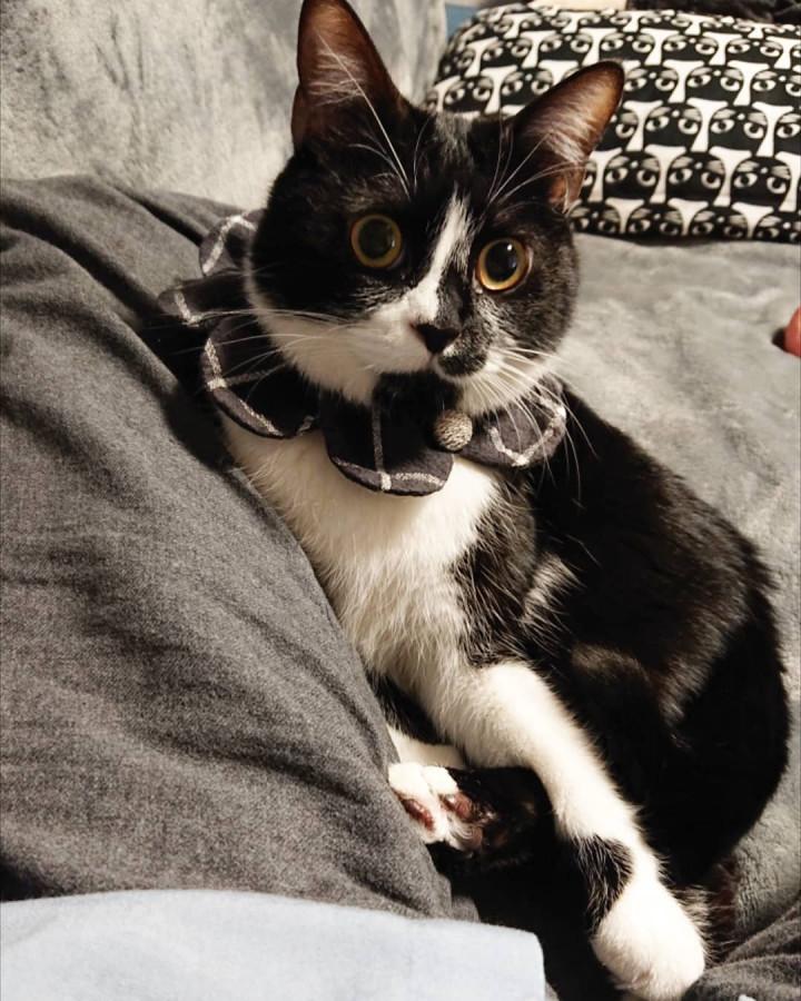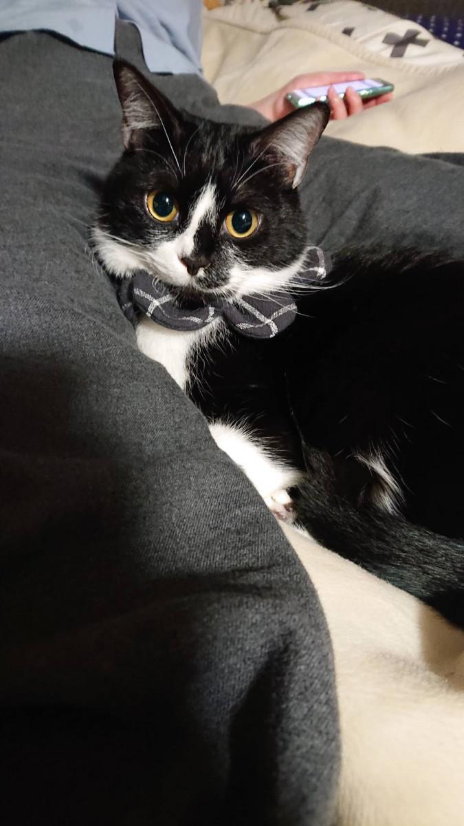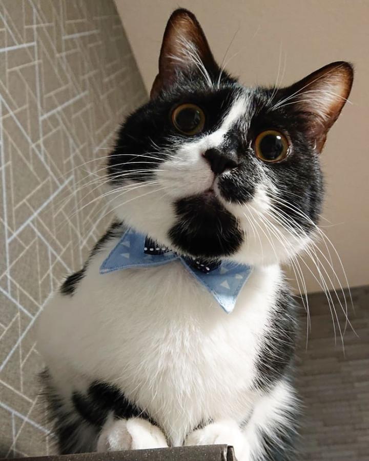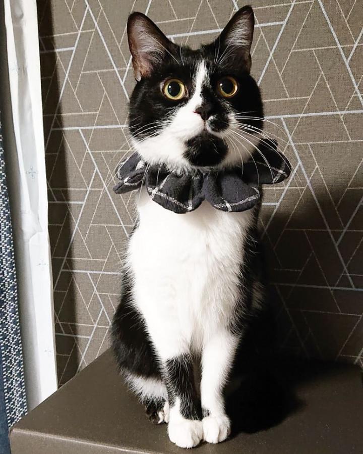 浅草橋のねこ休み展で買ったザビエル首輪、こちらもかわいすぎ問題。ウォッシャブルリネンの優しい風合いとシックなデザインがお気に入り。